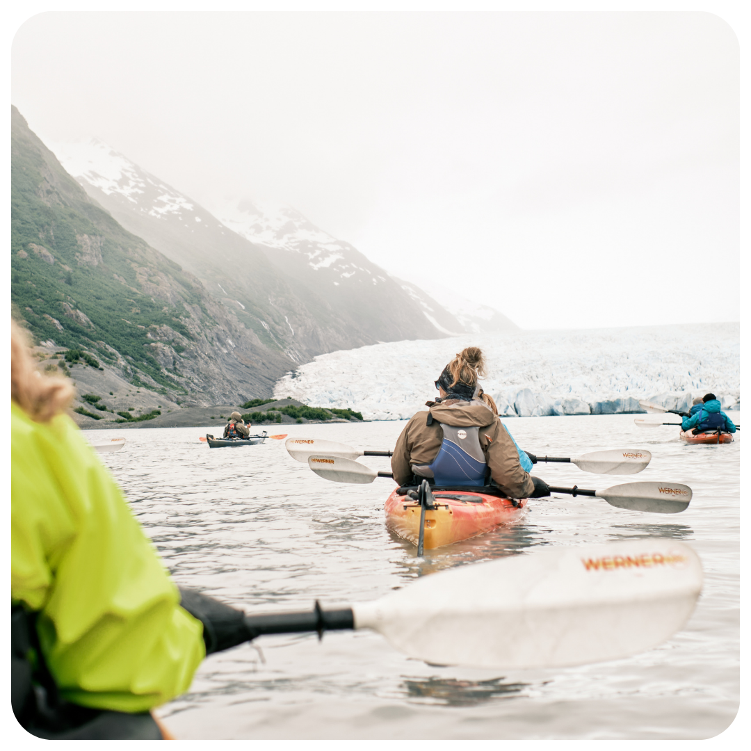 Ocean Kayaking + Glacier Hiking – Purposeful adventure designed to reset your body, sharpen perspective, and reawaken creativity.